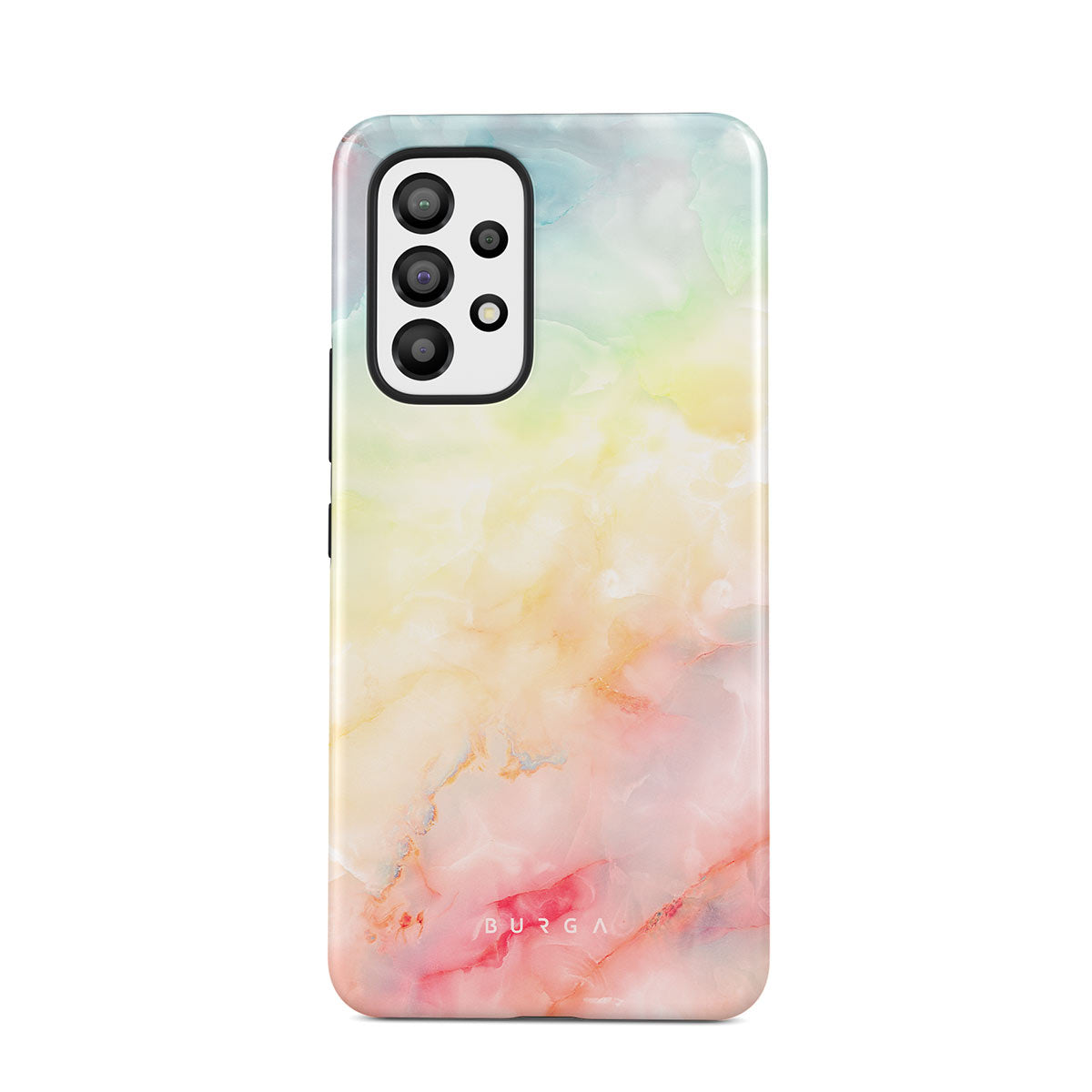 Color your world with our New Flame Samsung Galaxy A33 phone case. Inspired by the rainbow, this case is guaranteed to brighten your style. The dreamy pastel rainbow and the shockproof design of our case will keep your phone safe and sound while looking better than ever.