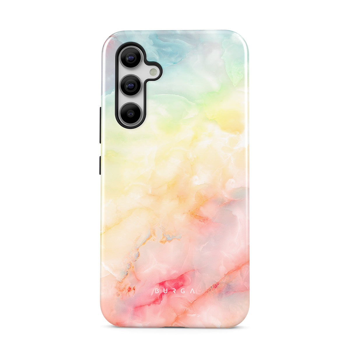 Color your world with our New Flame Samsung Galaxy A55 phone case. Inspired by the rainbow, this case is guaranteed to brighten your style. The dreamy pastel rainbow and the shockproof design of our case will keep your phone safe and sound while looking better than ever.