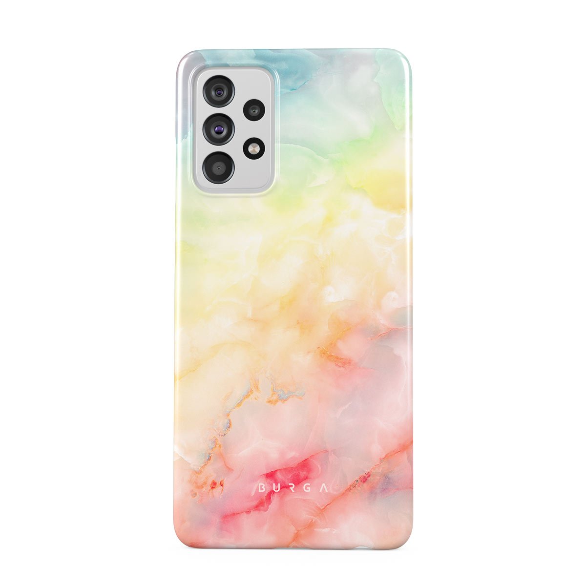 Color your world with our New Flame Samsung Galaxy A72 phone case. Inspired by the rainbow, this case is guaranteed to brighten your style. The dreamy pastel rainbow and the shockproof design of our case will keep your phone safe and sound while looking better than ever.