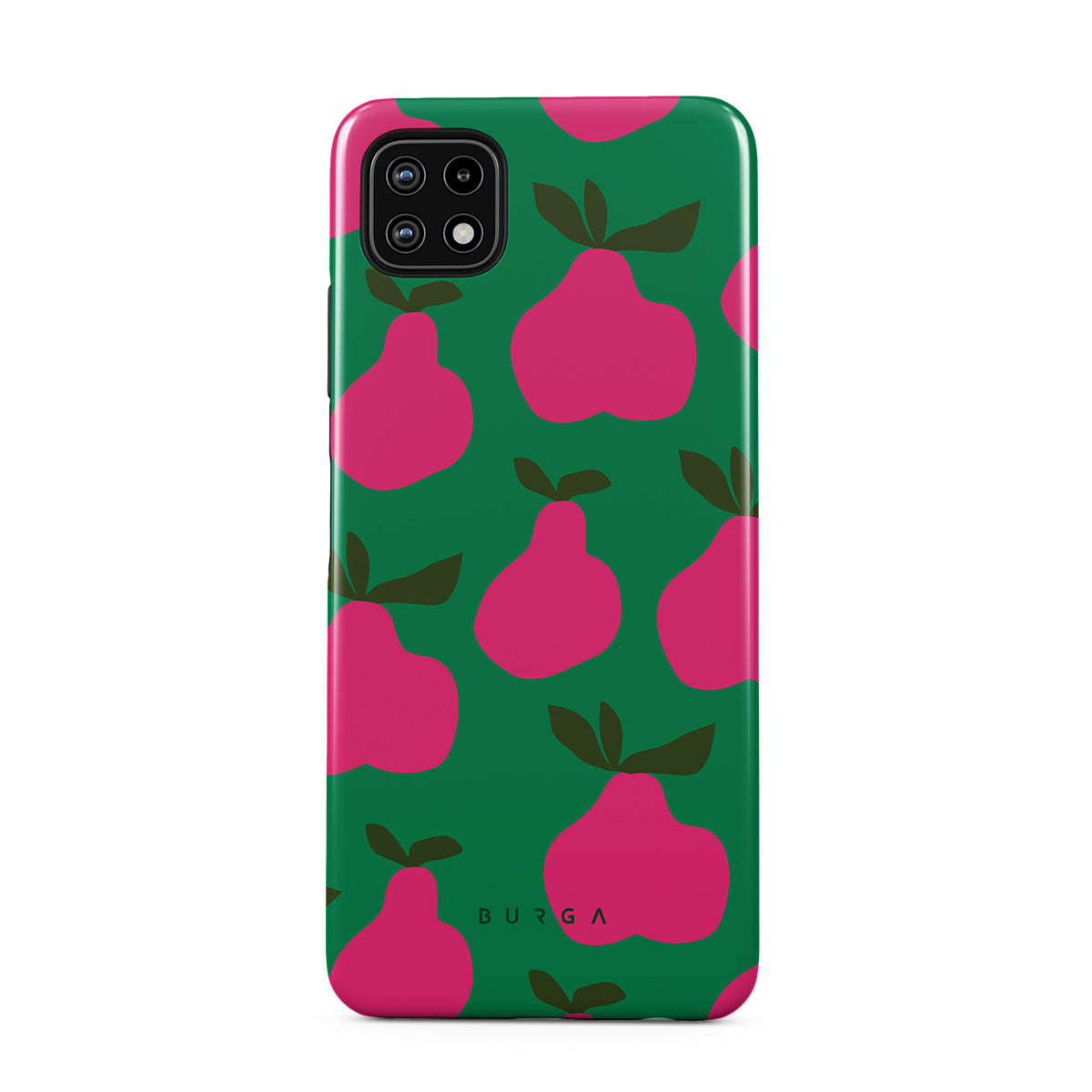 A symphony of refreshing pink pears against a backdrop of lush greeneryRefresco is a sip of summer, a zesty reminder of the sweetness surrounding us. With a lively design, this Samsung Galaxy A22 5G phone case turns your device into a playful masterpiece, inviting you to embrace the joy and vibrancy of life.