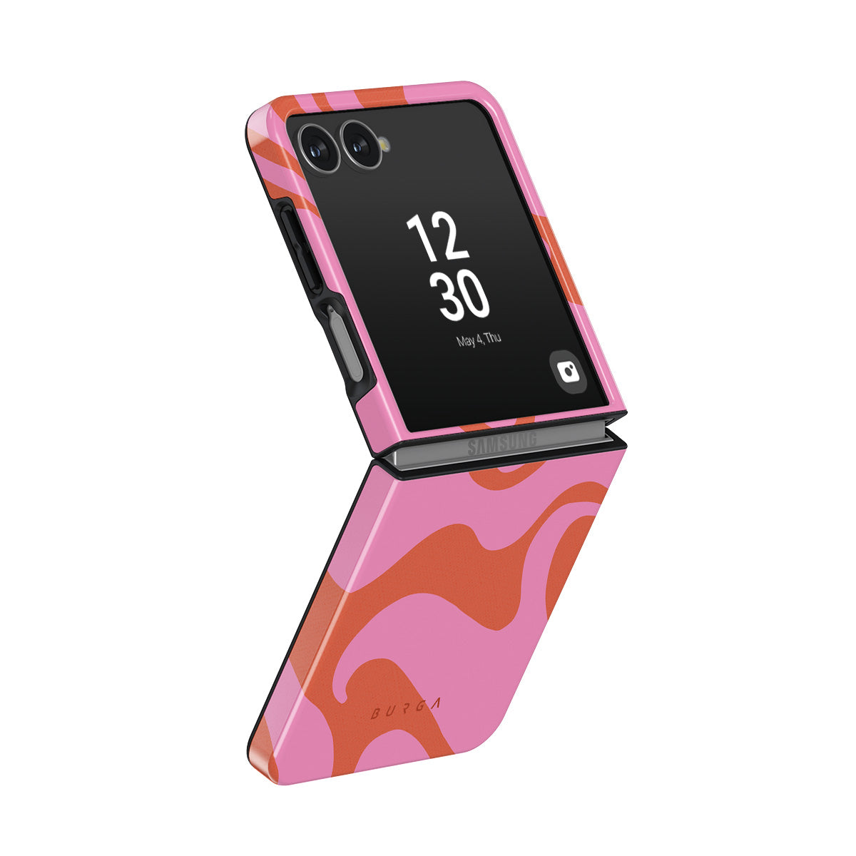 Bold and big take of a liquid swirl can be met in our Ride the Wave Samsung Galaxy Z Flip 7 phone case. It will not only turn your device into a beautiful art piece but will also keep it safe and sound while encasing it in a design from a 70s art gallery!