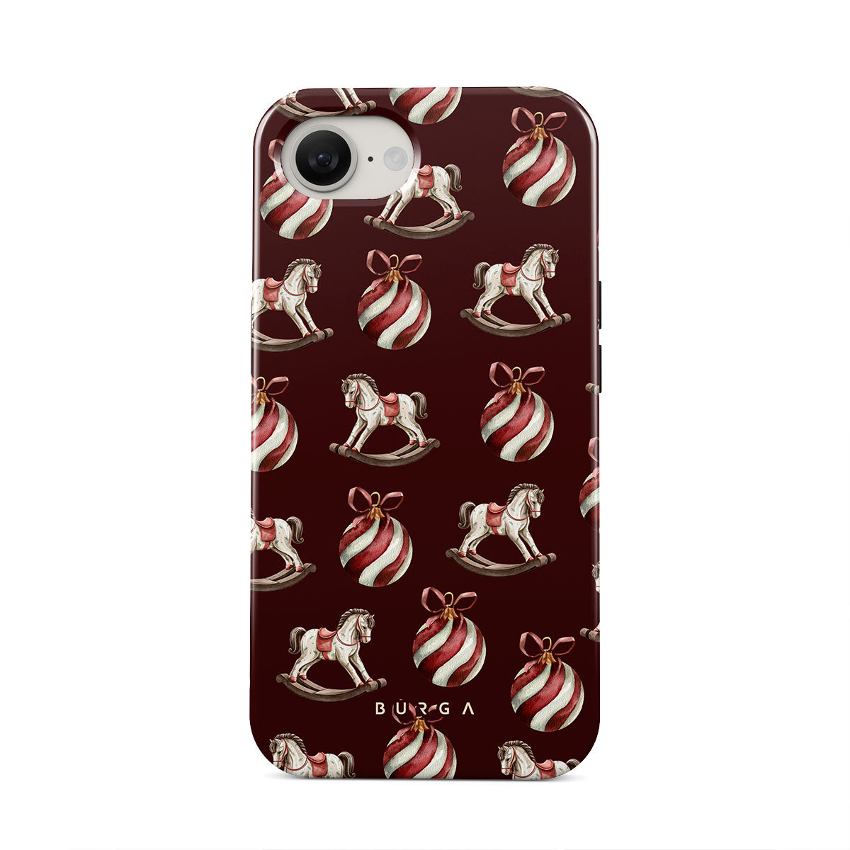 Jingle all the way with this playful iPhone 16e phone case design. Featuring rocking horses and candy-striped bells, our Rocking Around design transports you back to childhood moments of decorating the tree and waiting for Santa. It’s the ultimate throwback to vintage Christmas charm.