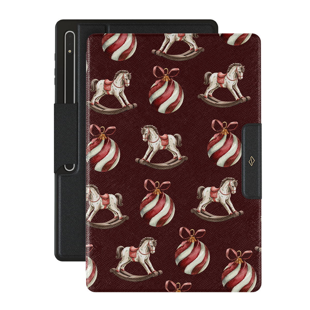 Jingle all the way with this playful Samsung Galaxy Tab S8 Ultra folio case design. Featuring rocking horses and candy-striped bells, our Rocking Around design transports you back to childhood moments of decorating the tree and waiting for Santa. It’s the ultimate throwback to vintage Christmas charm.