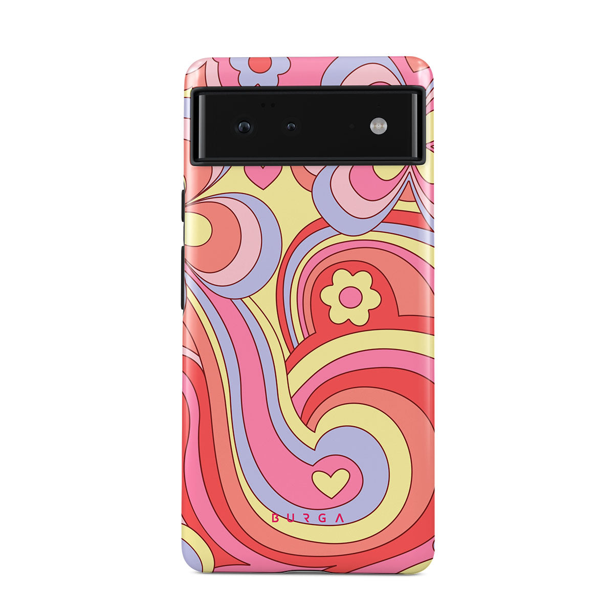 A design embodying a radiant, cheerful life filled with hope and joy. A celebration in hues, a mix of vibrant pink, yellow, and blue swirls. Roller Disco is where fashion meets fun. With beautiful pastels blending into a head-turning style, every day feels like a party. Spin your Google Pixel 6a phone case into the spotlight!