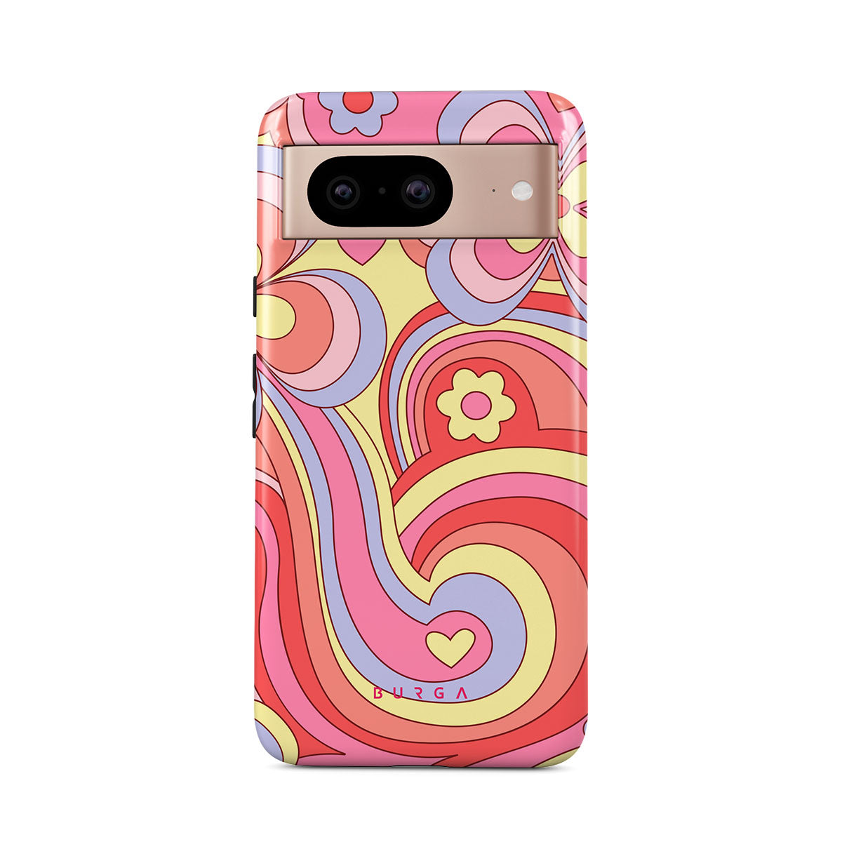 A design embodying a radiant, cheerful life filled with hope and joy. A celebration in hues, a mix of vibrant pink, yellow, and blue swirls. Roller Disco is where fashion meets fun. With beautiful pastels blending into a head-turning style, every day feels like a party. Spin your Google Pixel 8 phone case into the spotlight!