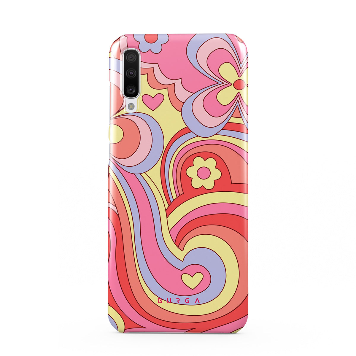 A design embodying a radiant, cheerful life filled with hope and joy. A celebration in hues, a mix of vibrant pink, yellow, and blue swirls. Roller Disco is where fashion meets fun. With beautiful pastels blending into a head-turning style, every day feels like a party. Spin your Samsung Galaxy A70 phone case into the spotlight!