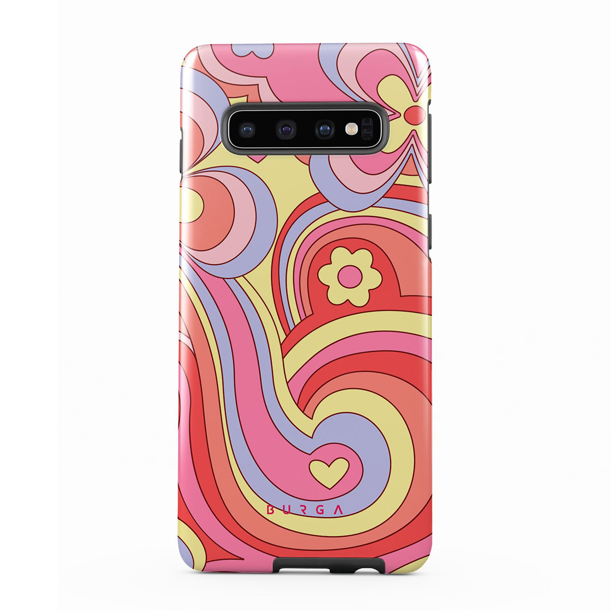 A design embodying a radiant, cheerful life filled with hope and joy. A celebration in hues, a mix of vibrant pink, yellow, and blue swirls. Roller Disco is where fashion meets fun. With beautiful pastels blending into a head-turning style, every day feels like a party. Spin your Samsung Galaxy S10 4G phone case into the spotlight!