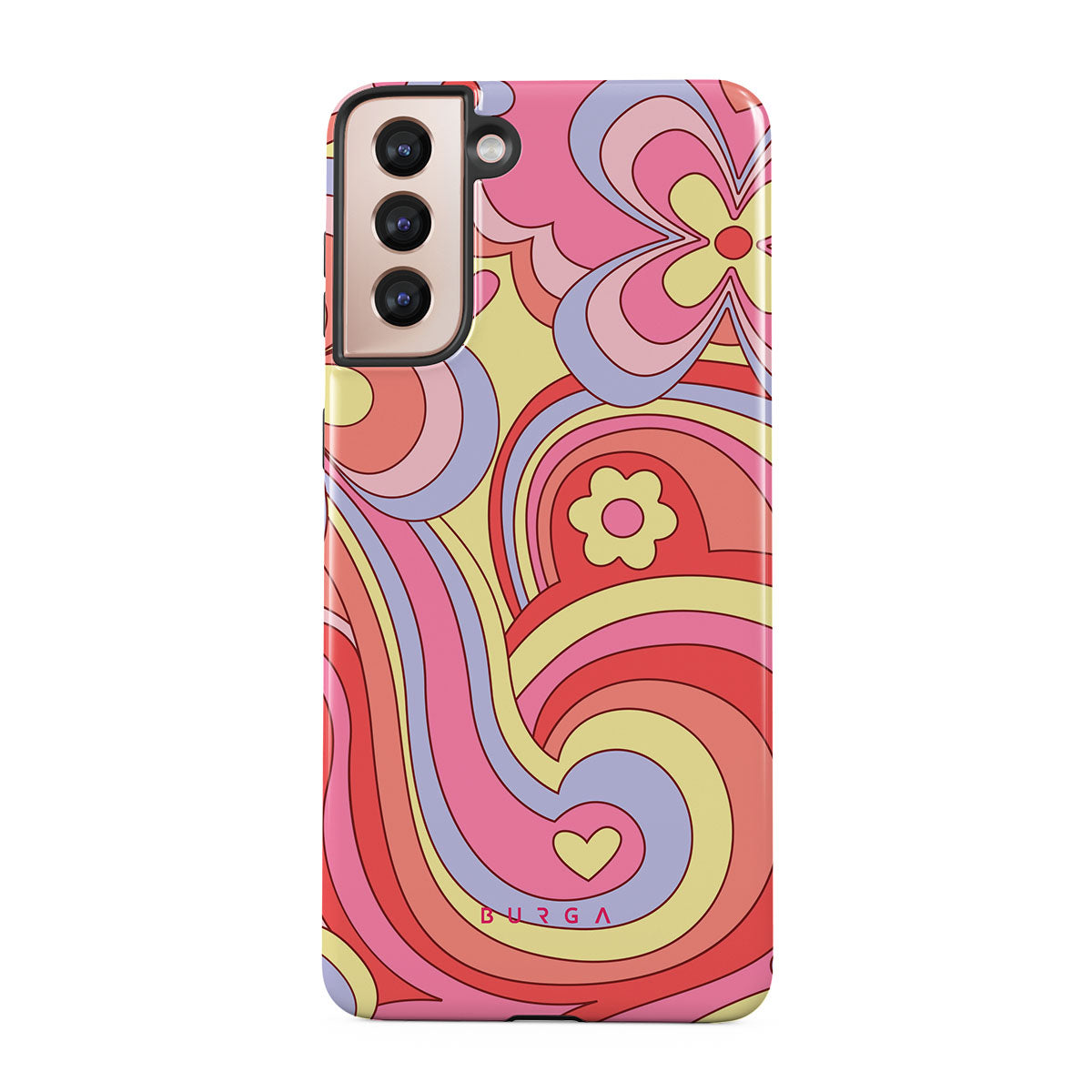 A design embodying a radiant, cheerful life filled with hope and joy. A celebration in hues, a mix of vibrant pink, yellow, and blue swirls. Roller Disco is where fashion meets fun. With beautiful pastels blending into a head-turning style, every day feels like a party. Spin your Samsung Galaxy S21 Plus phone case into the spotlight!