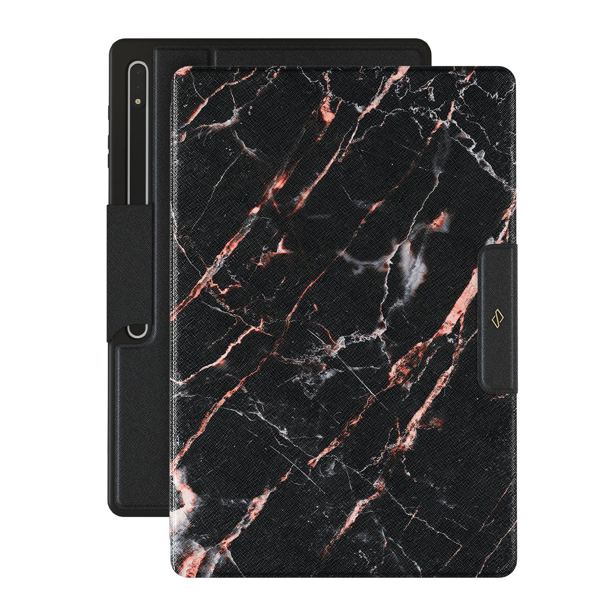 With our Rose Gold Marble Samsung Galaxy Tab S8 Ultra folio case cover, enjoy the contrasting light in design emphasized in the best marble way. Luxury case with a touch of a pretty pink that protects your Galaxy Tab – an absolute game-changer.
