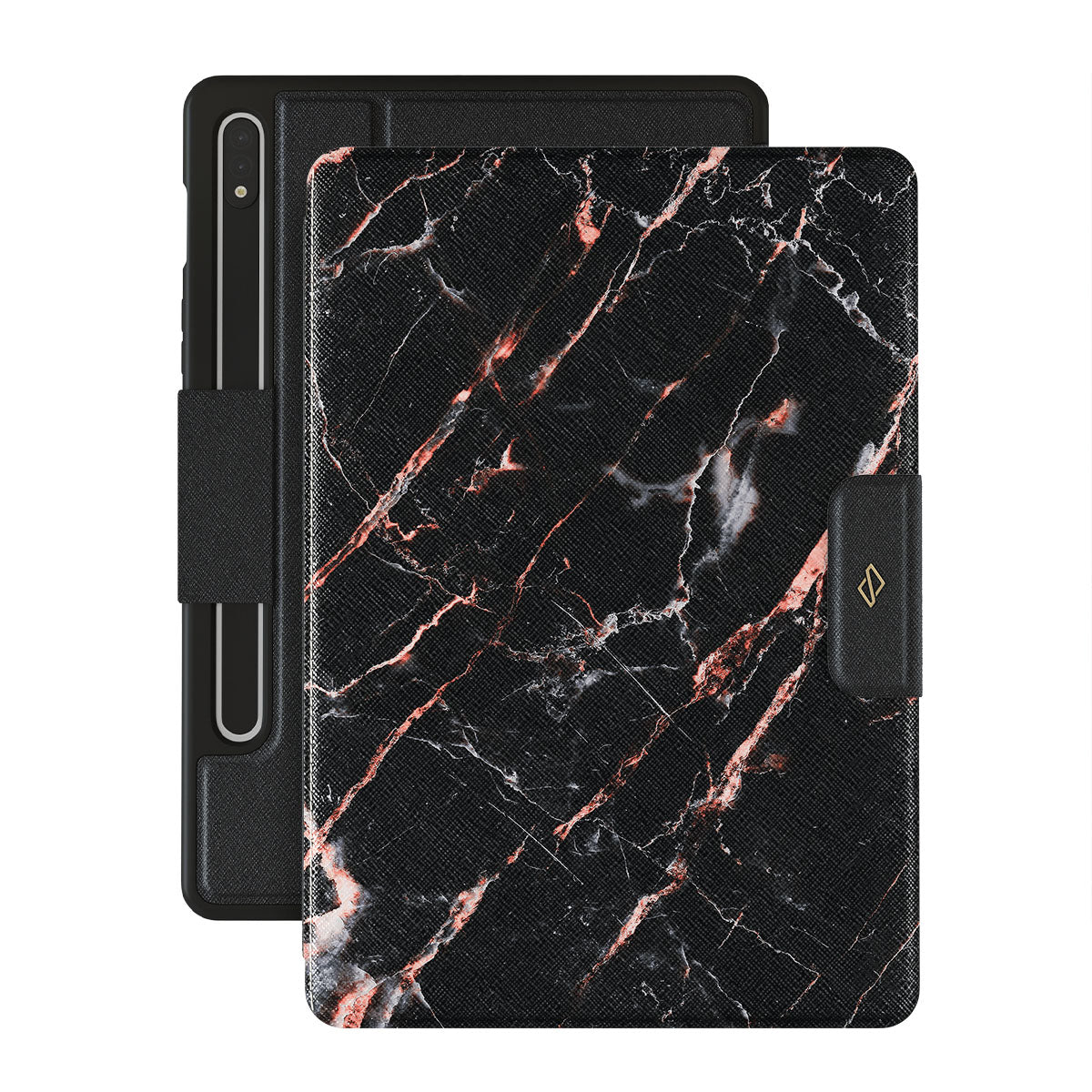 With our Rose Gold Marble Samsung Galaxy Tab S9 FE folio case cover, enjoy the contrasting light in design emphasized in the best marble way. Luxury case with a touch of a pretty pink that protects your Galaxy Tab – an absolute game-changer.
