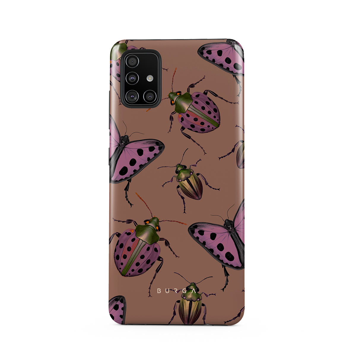 Embrace the symbiosis of nature with the Runaway Samsung Galaxy A51 4G phone case, where the delicate beauty of butterflies meets the earthy charm of beetles. This design is a celebration of life's intricate balance, a reminder that everything in nature has its place.