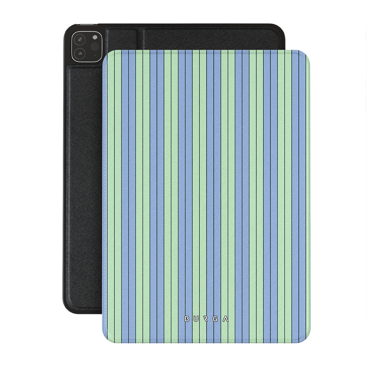 Embrace the effortless chic of Sailaway. This iPad Pro 11 (2nd/1st Gen) folio case design lines up a parade of soft, pastel stripes, capturing the laid-back essence of seaside escapades. It's your daily slice of summer fun, wrapped in style.