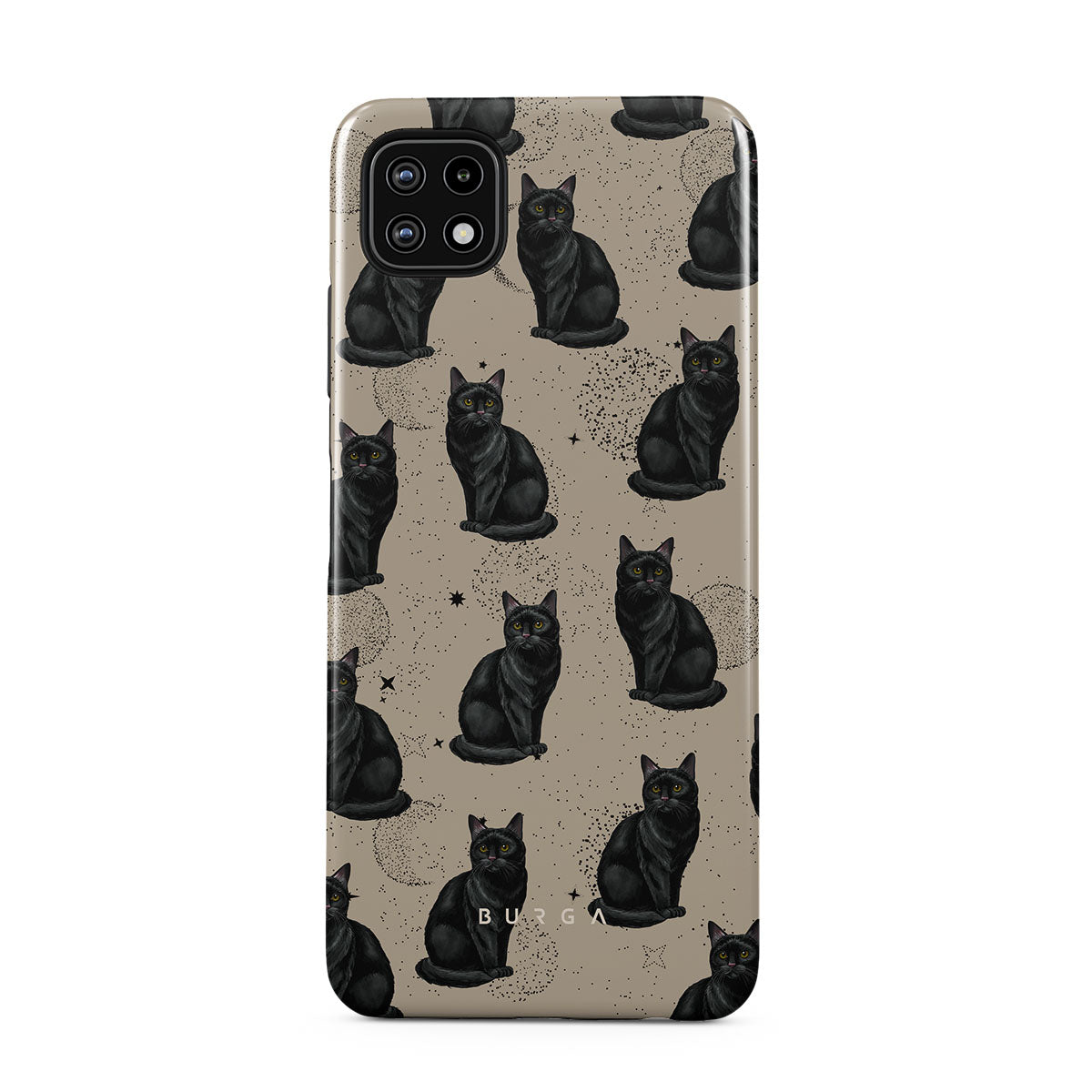 They say black cats are bad luck, but with our Salem Samsung Galaxy A22 5G phone case design, fortune follows wherever these little guardians go. These cats aren't just symbols; they’re your protectors in the mysterious world of style. Superstitious or not, this one’s got your back.