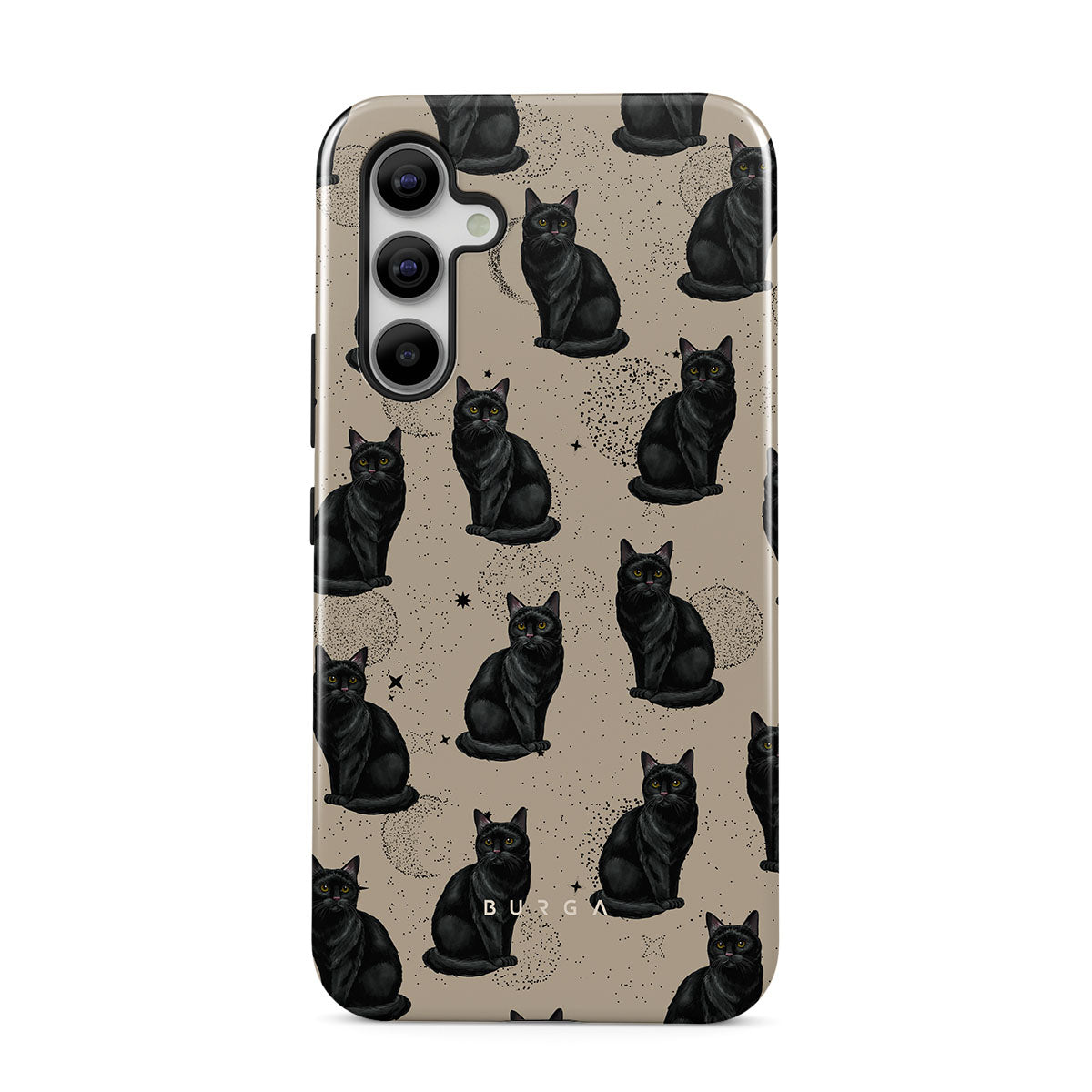 They say black cats are bad luck, but with our Salem Samsung Galaxy A55 phone case design, fortune follows wherever these little guardians go. These cats aren't just symbols; they’re your protectors in the mysterious world of style. Superstitious or not, this one’s got your back.