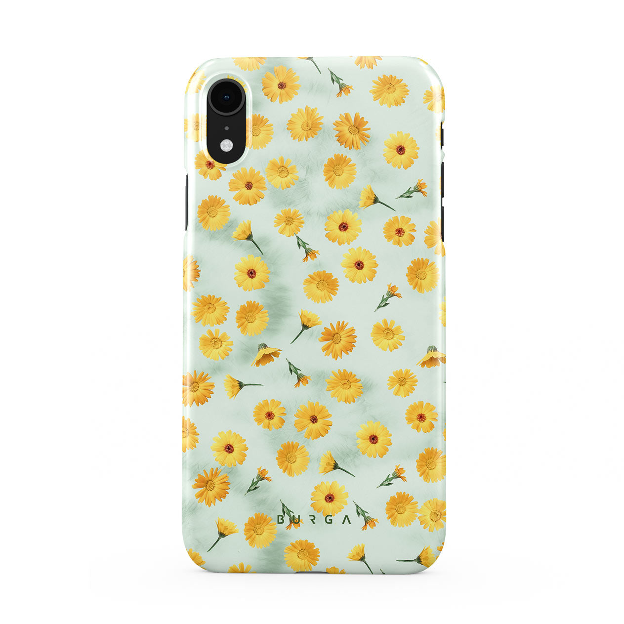 In our Sanctuary of Love iPhone XR phone case, a soft mint marble meets a glowing pattern of yellow flowers that will surely add a splash of energy to your style while protecting your phone from dangerous falls.