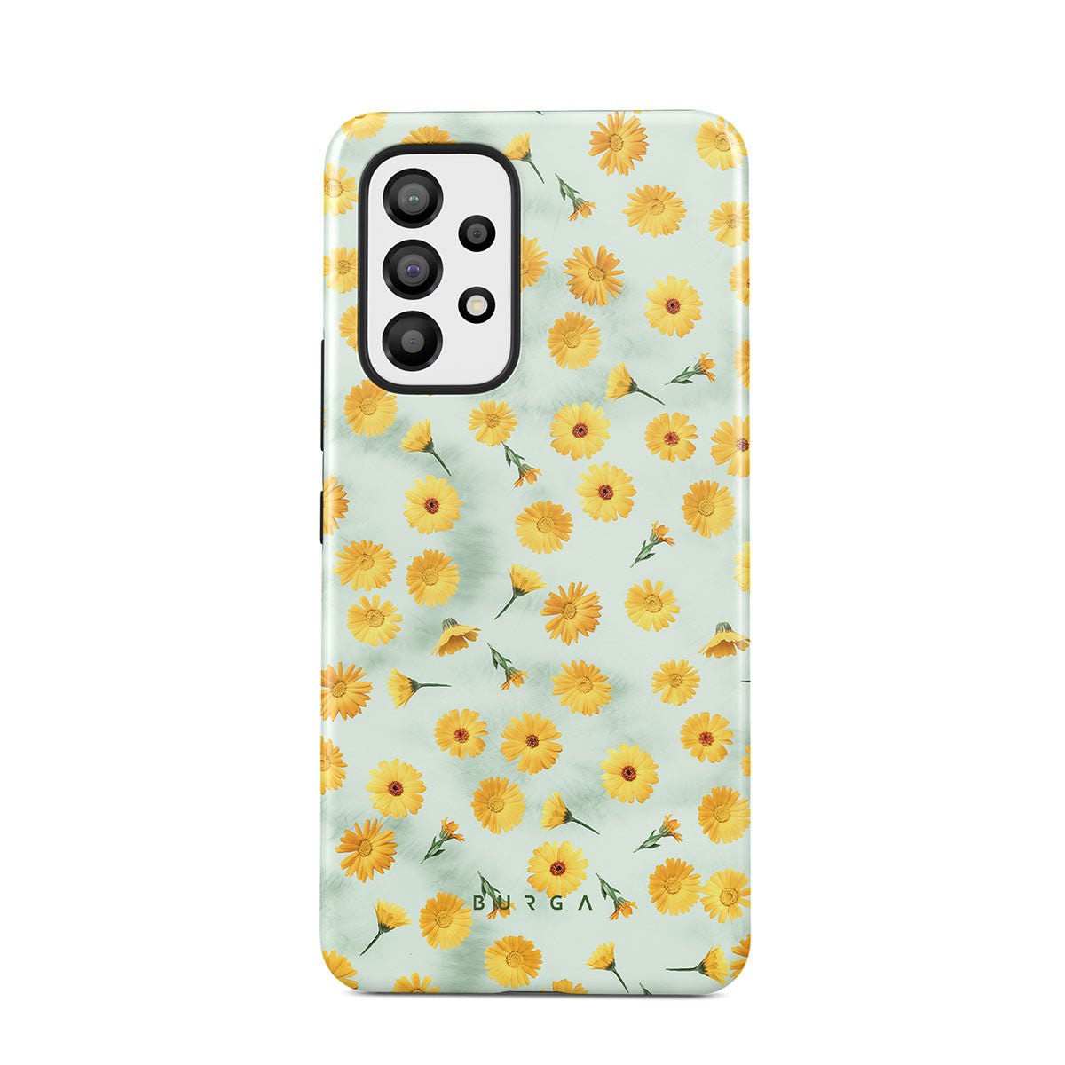 In our Sanctuary of Love Samsung Galaxy A53 phone case, a soft mint marble meets a glowing pattern of yellow flowers that will surely add a splash of energy to your style while protecting your phone from dangerous falls.