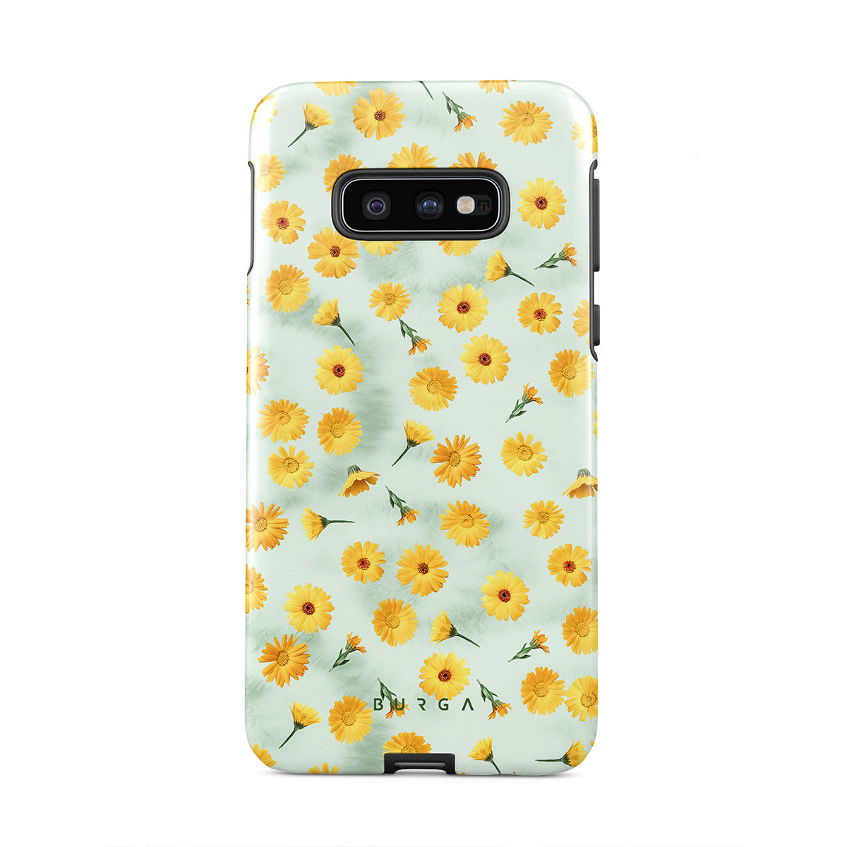 In our Sanctuary of Love Samsung Galaxy S10E phone case, a soft mint marble meets a glowing pattern of yellow flowers that will surely add a splash of energy to your style while protecting your phone from dangerous falls.