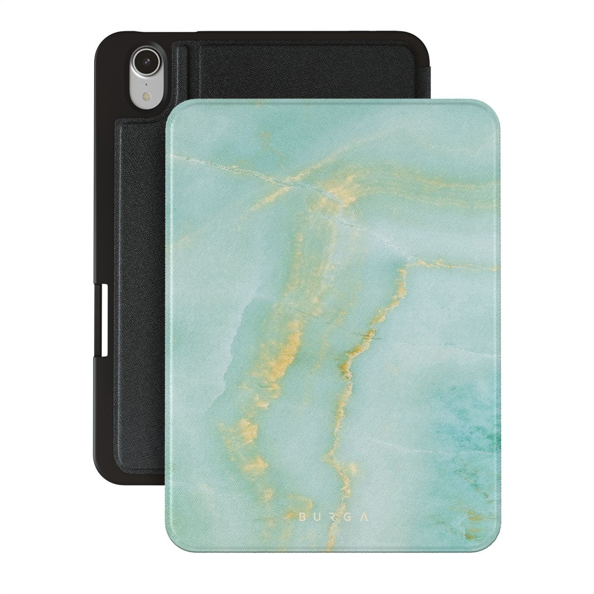 Take the vacation memories with yourself. Now you can find the sandy shore and beautiful water in our pastel Sea Salt iPad Mini 8.3 (A17 Pro/6th Gen) 2021 folio case design. The delicate marble pattern that combines with pretty pastel colors adds a soft touch to your device while protecting it from falls.