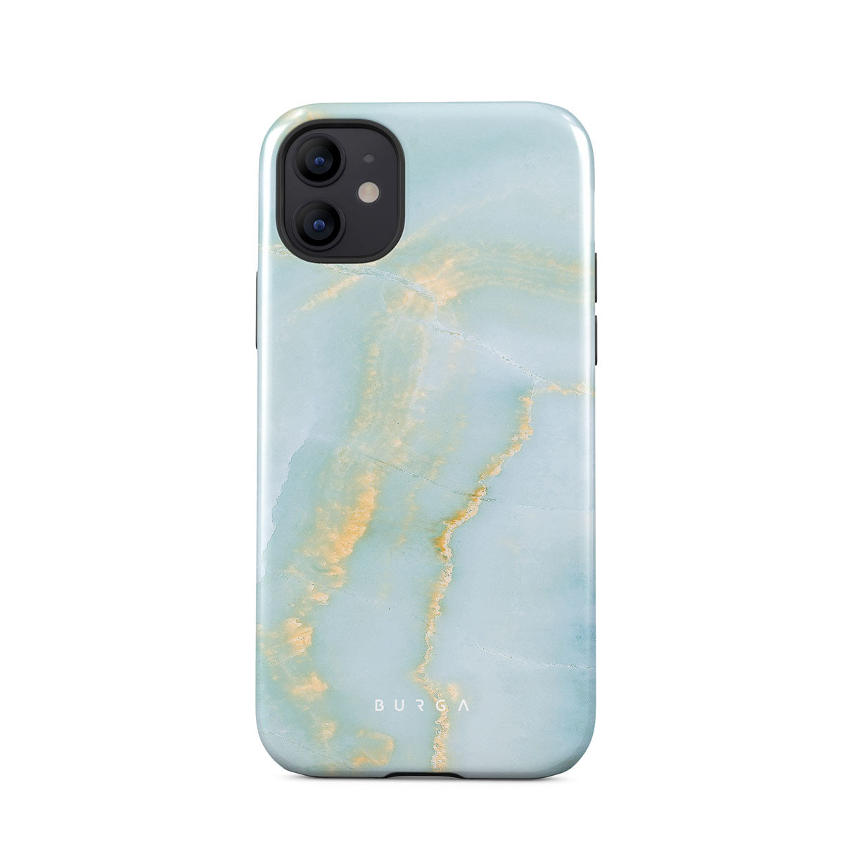 iPhone 12 phone case design. The delicate marble pattern that combines with pretty pastel colors adds a soft touch to your device while protecting it from falls.