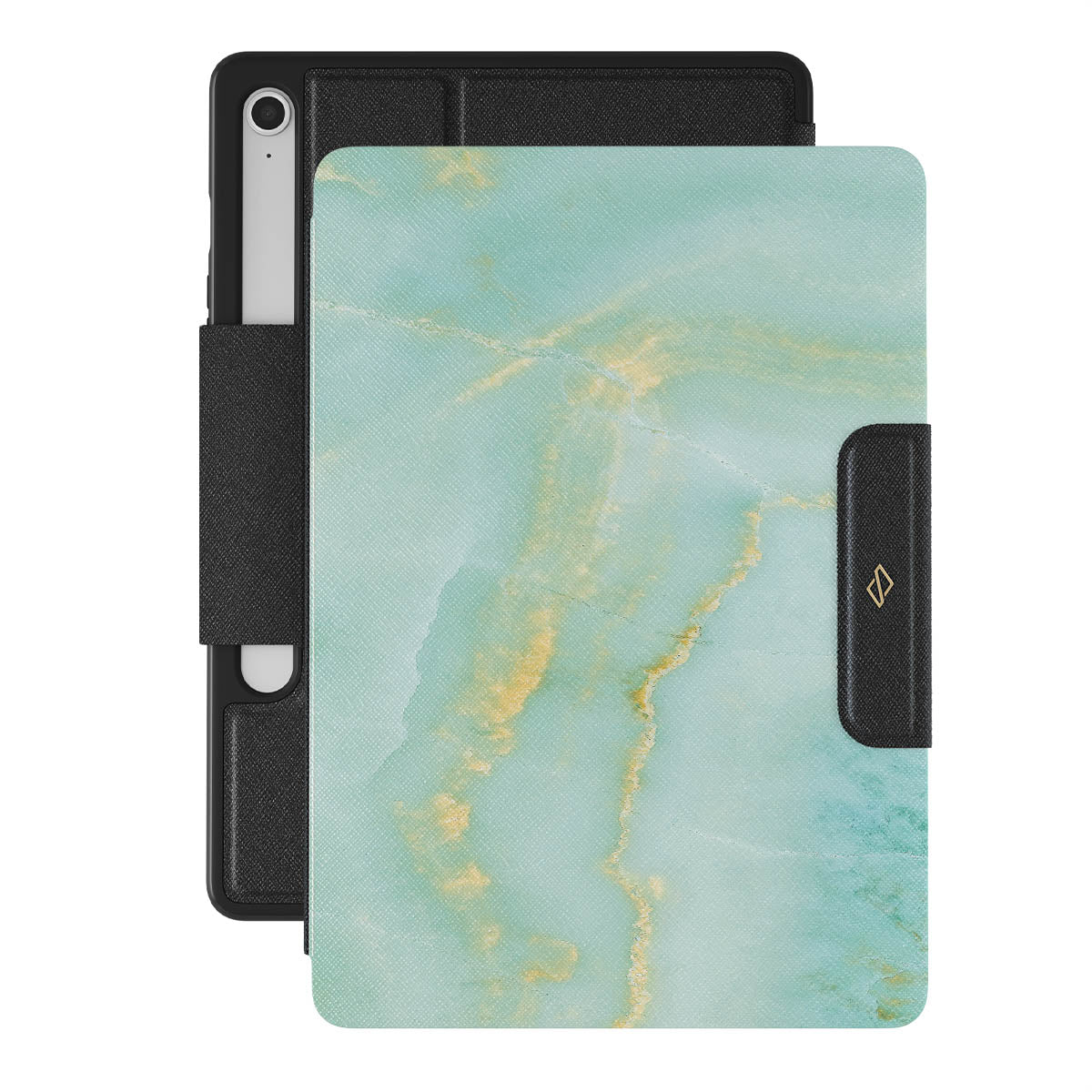 Take the vacation memories with yourself. Now you can find the sandy shore and beautiful water in our pastel Sea Salt Samsung Galaxy Tab S10 FE folio case design. The delicate marble pattern that combines with pretty pastel colors adds a soft touch to your device while protecting it from falls.