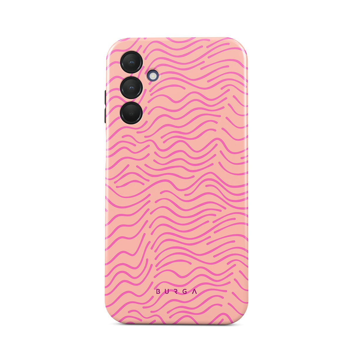 Everyone has their hideaway place for moments of relaxation. We have combined the feel it gives us in our Secret Spot Samsung Galaxy A15 4G / 5G phone case design. The soft pink wavy pattern casually flows through the pastel pink background, creating very well-thought-out chaos. Bring peace of mind with this cute pink case, which will keep your phone safe in its little hideaway!