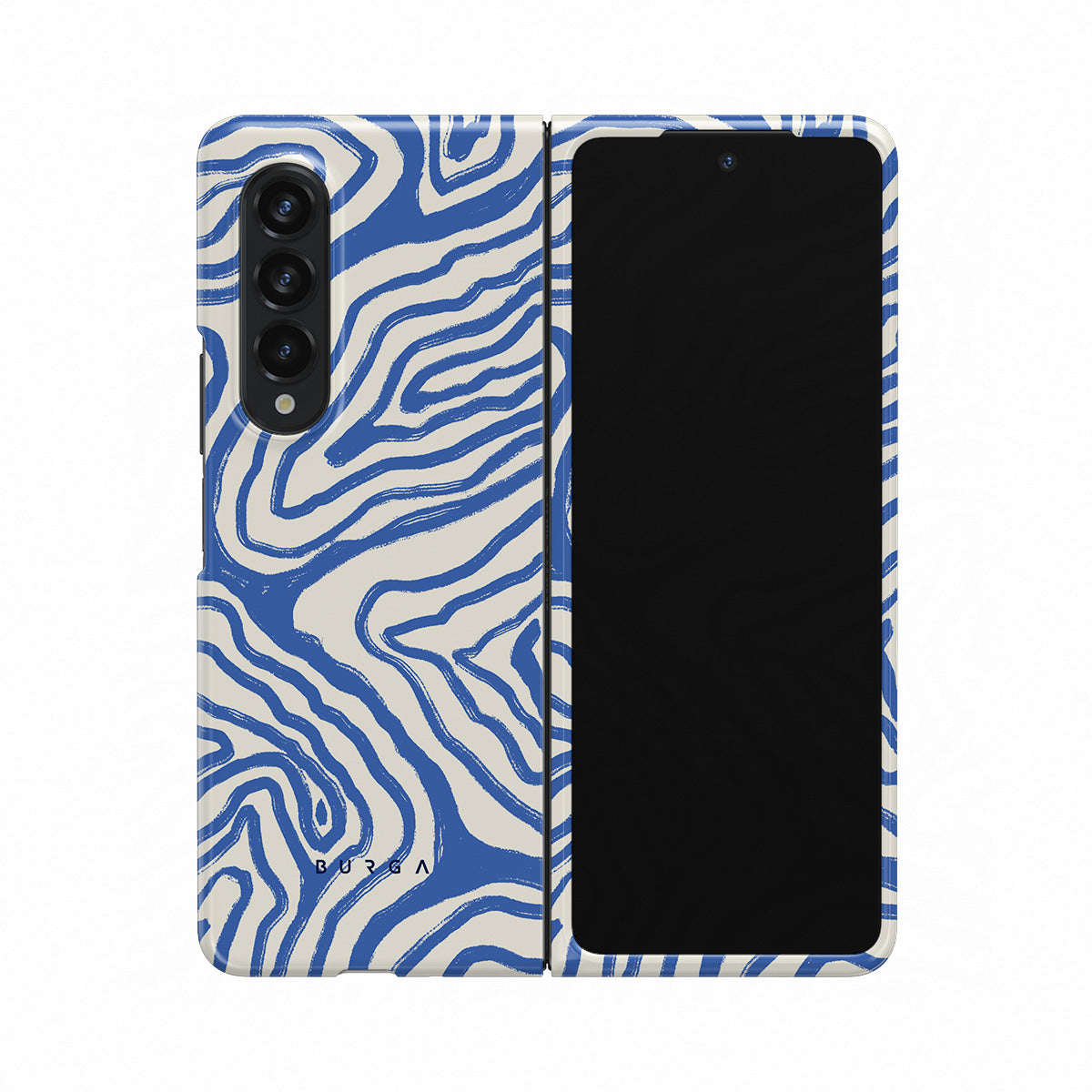 The Seven Seas Samsung Galaxy Z Fold 3 case is a perfect accessory for those who love the ocean and seek to carry a piece of its magic with them. The delicate swirls that dance in shades of oceanic blue inspire a sense of adventure. At the same time, they invite us to pause and appreciate the fluidity and serenity of the sea.