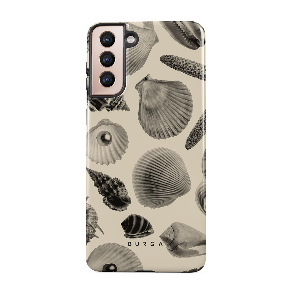 A sense of calm and serenity. Effortless elegance and natural beauty. A stunning mosaic pattern made up of carefully arranged seashells. A neutral palette that evokes memories of a day spent by the ocean. Our Shell Mosaic Samsung Galaxy S21 Plus case is the perfect accessory for any beach lover.