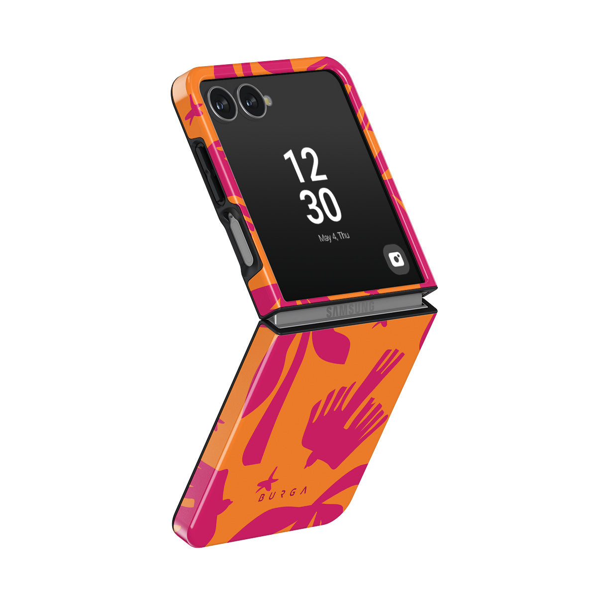 Meet Siesta, the Samsung Galaxy Z Flip 7 phone case that turns every day into a tropical getaway, your own slice of paradise. The unapologetically vivid oranges and bright pinks capture the spirit of warm, sunny afternoons and the laid-back vibes of a leisurely siesta.