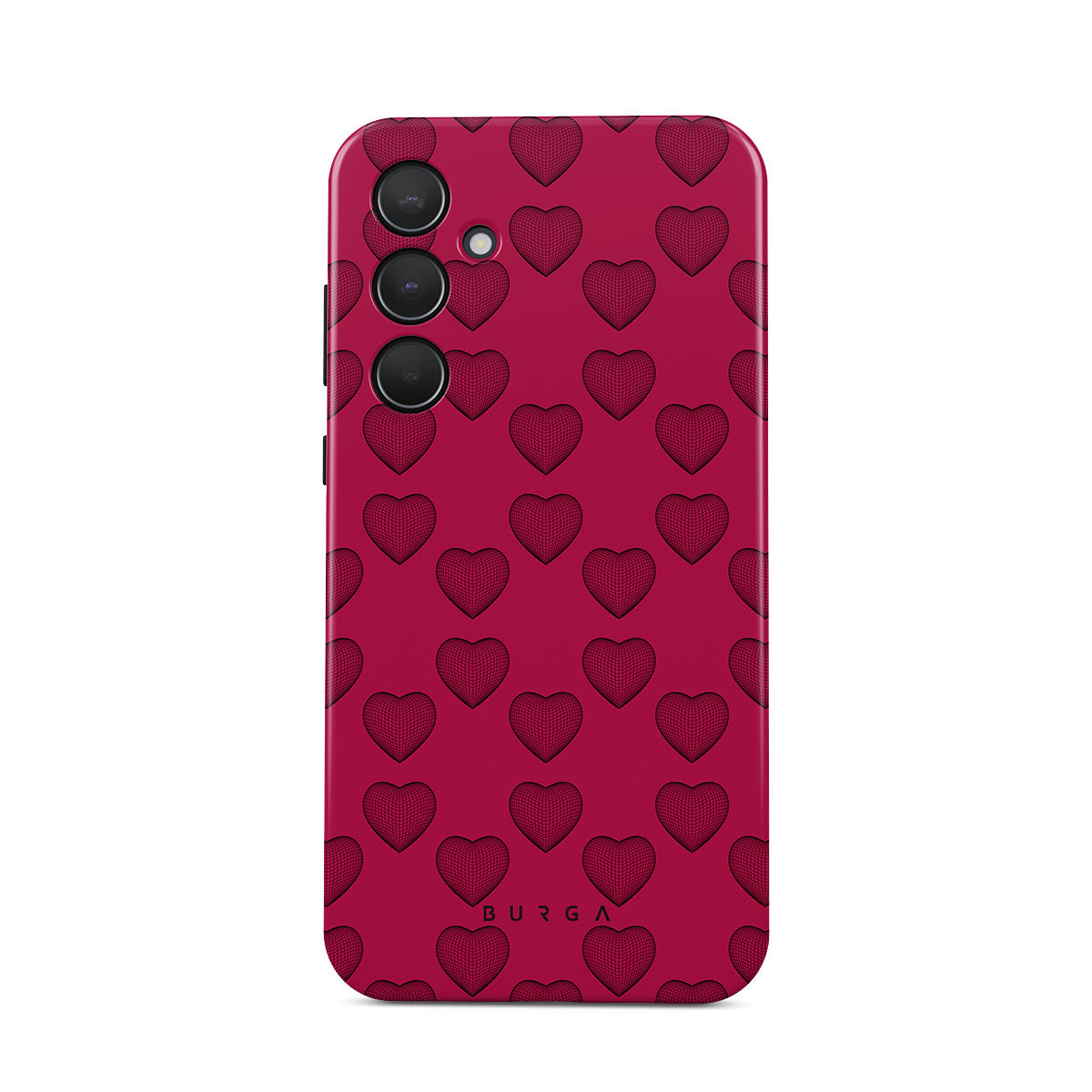Forget roses. Show the world that you're confident, unapologetically yourself, and ready to take on the day. The vivid pink background is eye-catching and fun. The floating darker hearts add depth and sophistication. While serving as a gentle reminder to prioritize your own happiness, our Single Not Sorry Samsung Galaxy A35 phone case will brighten up any outfit.