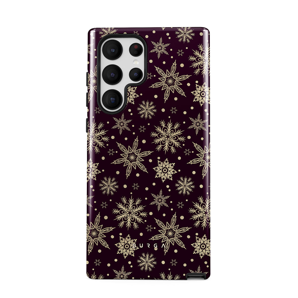Magical, mythical, and mesmerizing, our Sleeping Beauty Samsung Galaxy S22 Ultra phone case is precisely that. The deep burgundy background emphasizes the elegance of the intricate patterns of golden snowflakes. Add a touch of expensive elegance to your device while keeping it safe from all the dangerous falls.