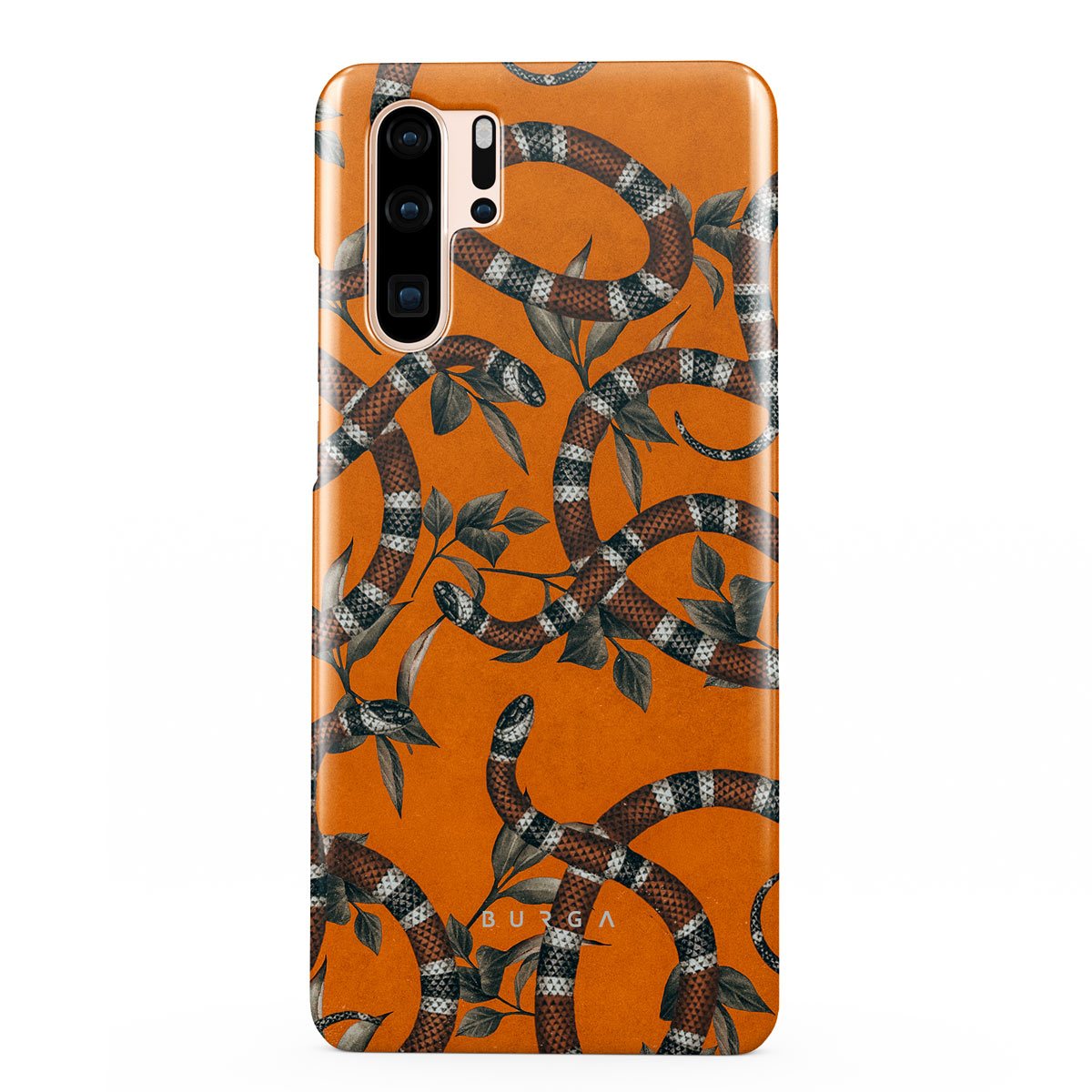Take a bit of fierceness with yourself with our bright orange and dangerously beautiful Huawei P30 Pro phone case with a snake pattern. This case is real eye candy for fashion lovers and just as needed for those who strive to keep their phones protected.