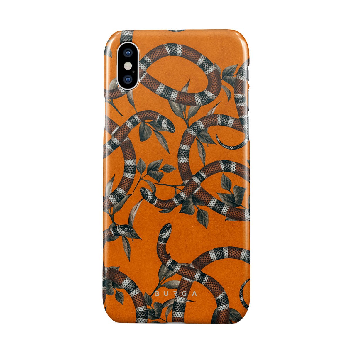 Take a bit of fierceness with yourself with our bright orange and dangerously beautiful iPhone X / XS phone case with a snake pattern. This case is real eye candy for fashion lovers and just as needed for those who strive to keep their phones protected.