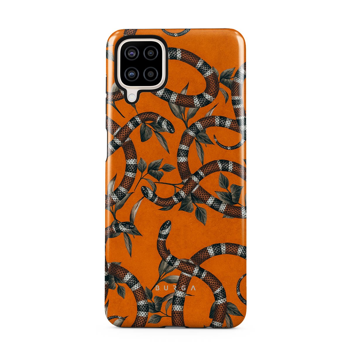 Take a bit of fierceness with yourself with our bright orange and dangerously beautiful Samsung Galaxy A12 4G phone case with a snake pattern. This case is real eye candy for fashion lovers and just as needed for those who strive to keep their phones protected.
