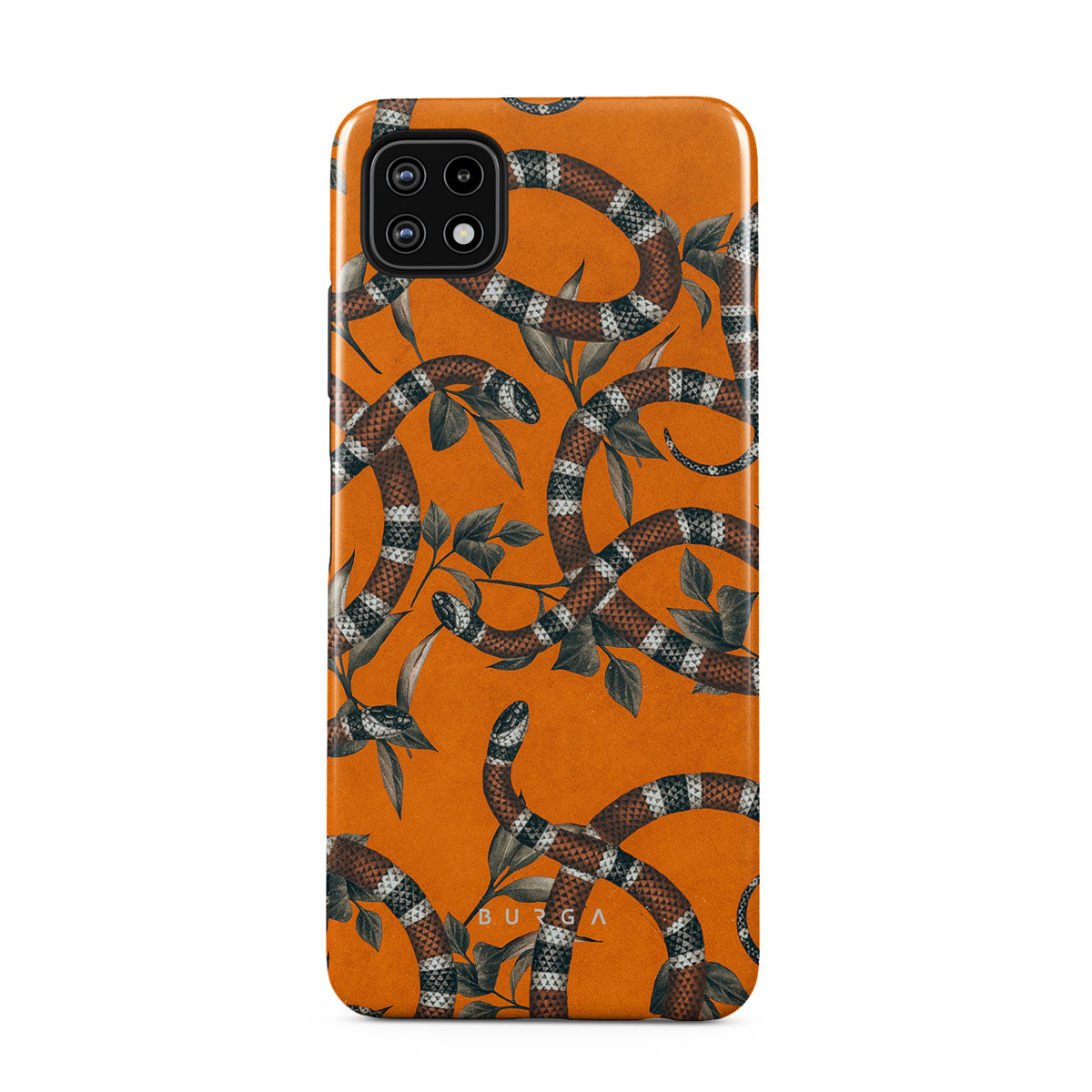 Take a bit of fierceness with yourself with our bright orange and dangerously beautiful Samsung Galaxy A22 5G phone case with a snake pattern. This case is real eye candy for fashion lovers and just as needed for those who strive to keep their phones protected.
