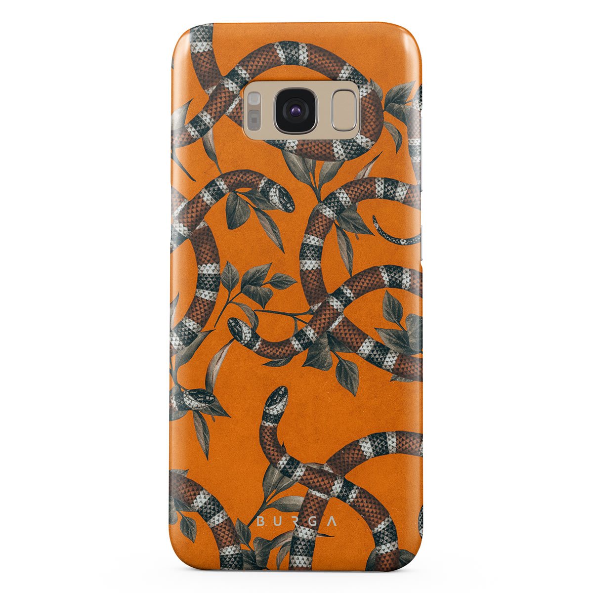 Take a bit of fierceness with yourself with our bright orange and dangerously beautiful Samsung Galaxy S8 phone case with a snake pattern. This case is real eye candy for fashion lovers and just as needed for those who strive to keep their phones protected.