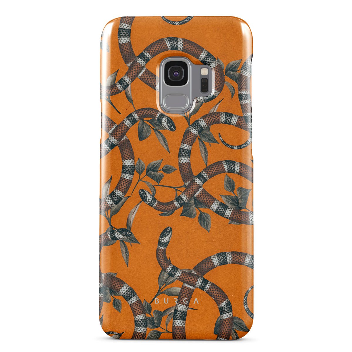 Take a bit of fierceness with yourself with our bright orange and dangerously beautiful Samsung Galaxy S9 phone case with a snake pattern. This case is real eye candy for fashion lovers and just as needed for those who strive to keep their phones protected.