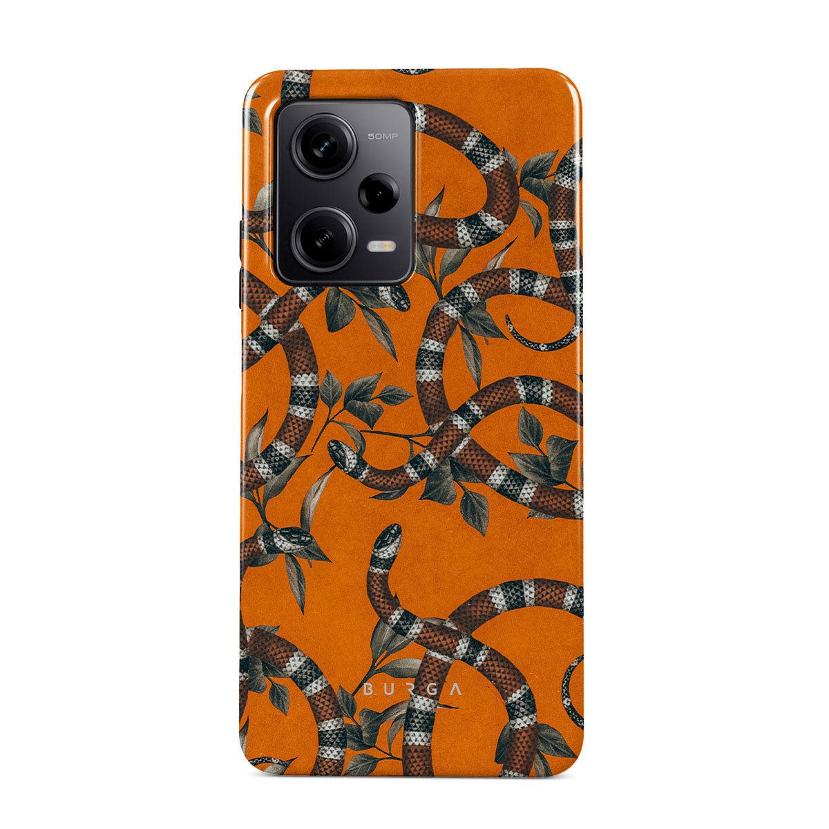 Take a bit of fierceness with yourself with our bright orange and dangerously beautiful Xiaomi Redmi Note 12 Pro+ 5G phone case with a snake pattern. This case is real eye candy for fashion lovers and just as needed for those who strive to keep their phones protected.