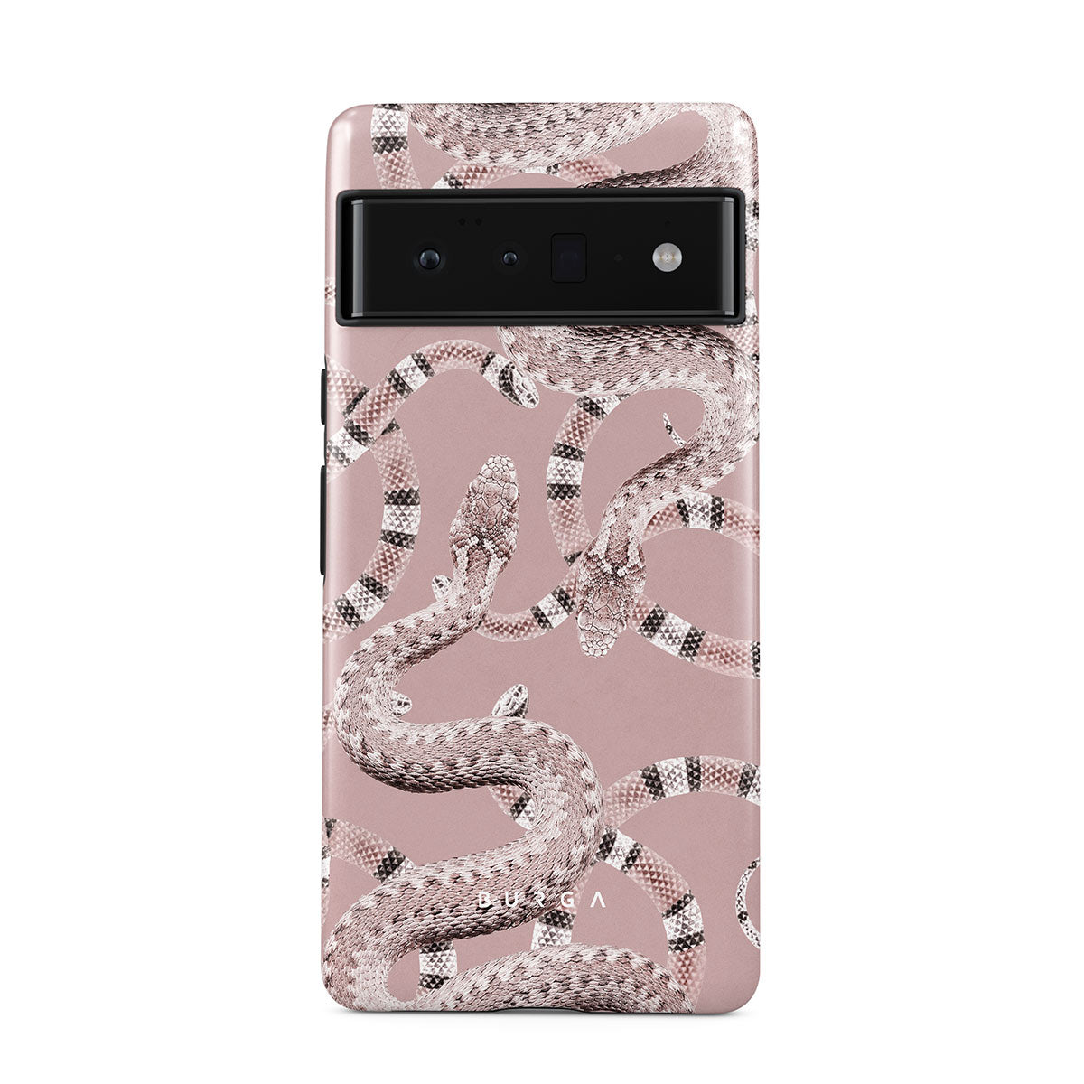 Bring the fierceness with our Poolside Glam Google Pixel 6 Pro phone case. With the pastel pink case featuring snakes, let everyone know that you can always stand for yourself no matter your kind nature. Make a statement and protect your phone at the same time.