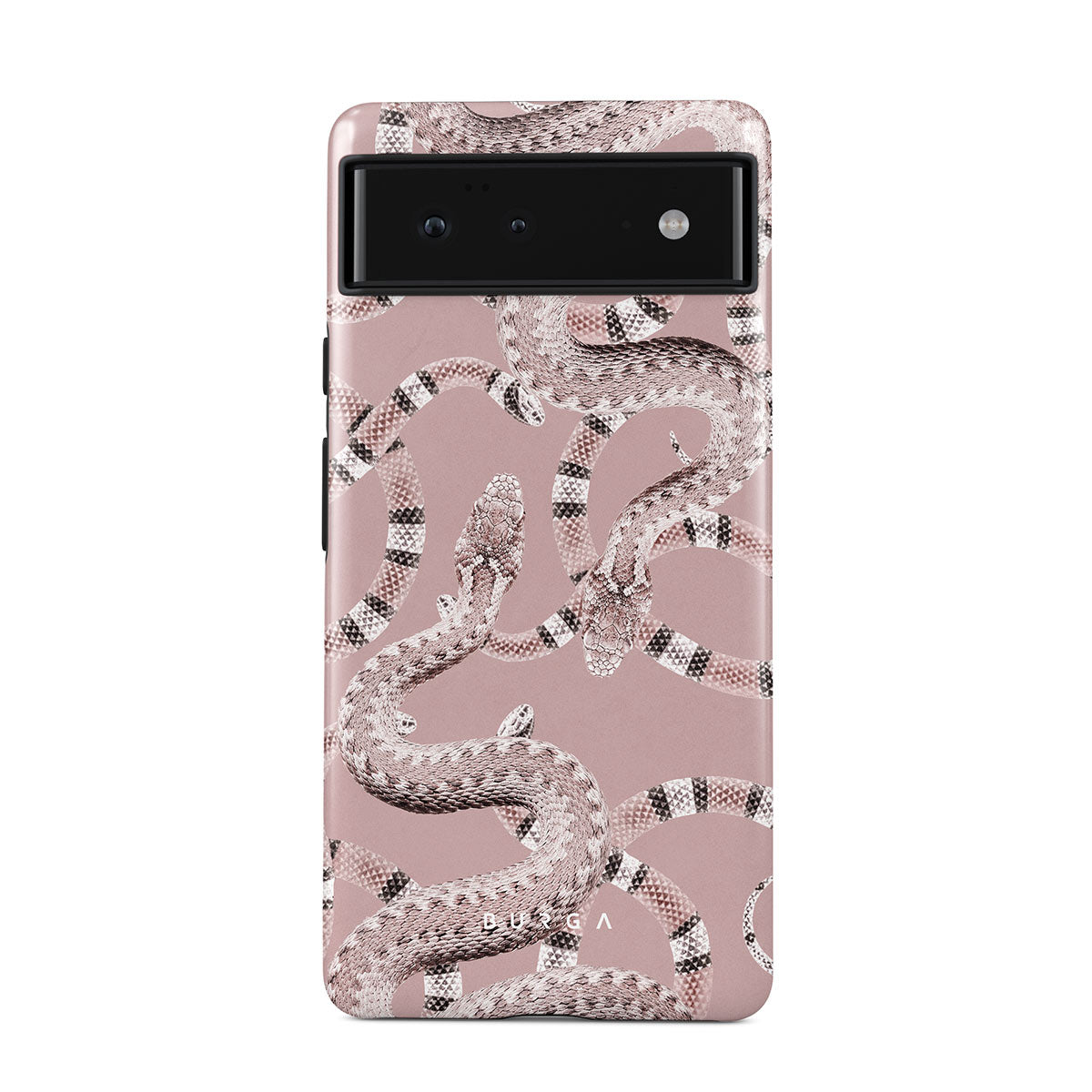 Bring the fierceness with our Poolside Glam Google Pixel 6a phone case. With the pastel pink case featuring snakes, let everyone know that you can always stand for yourself no matter your kind nature. Make a statement and protect your phone at the same time.