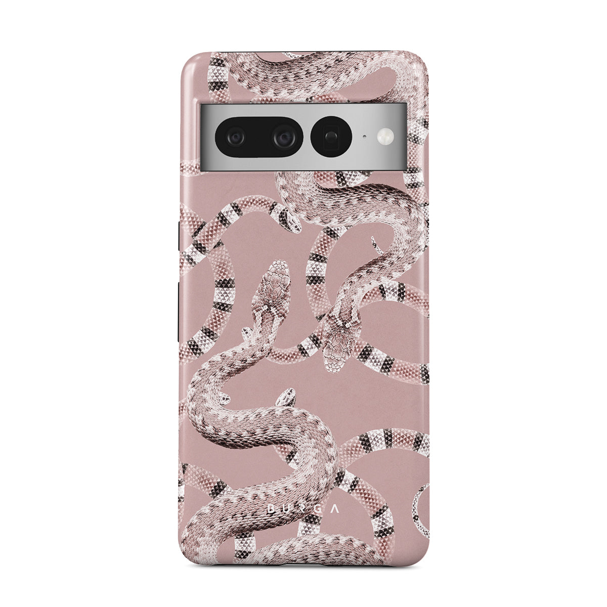 Bring the fierceness with our Poolside Glam Google Pixel 7 Pro phone case. With the pastel pink case featuring snakes, let everyone know that you can always stand for yourself no matter your kind nature. Make a statement and protect your phone at the same time.