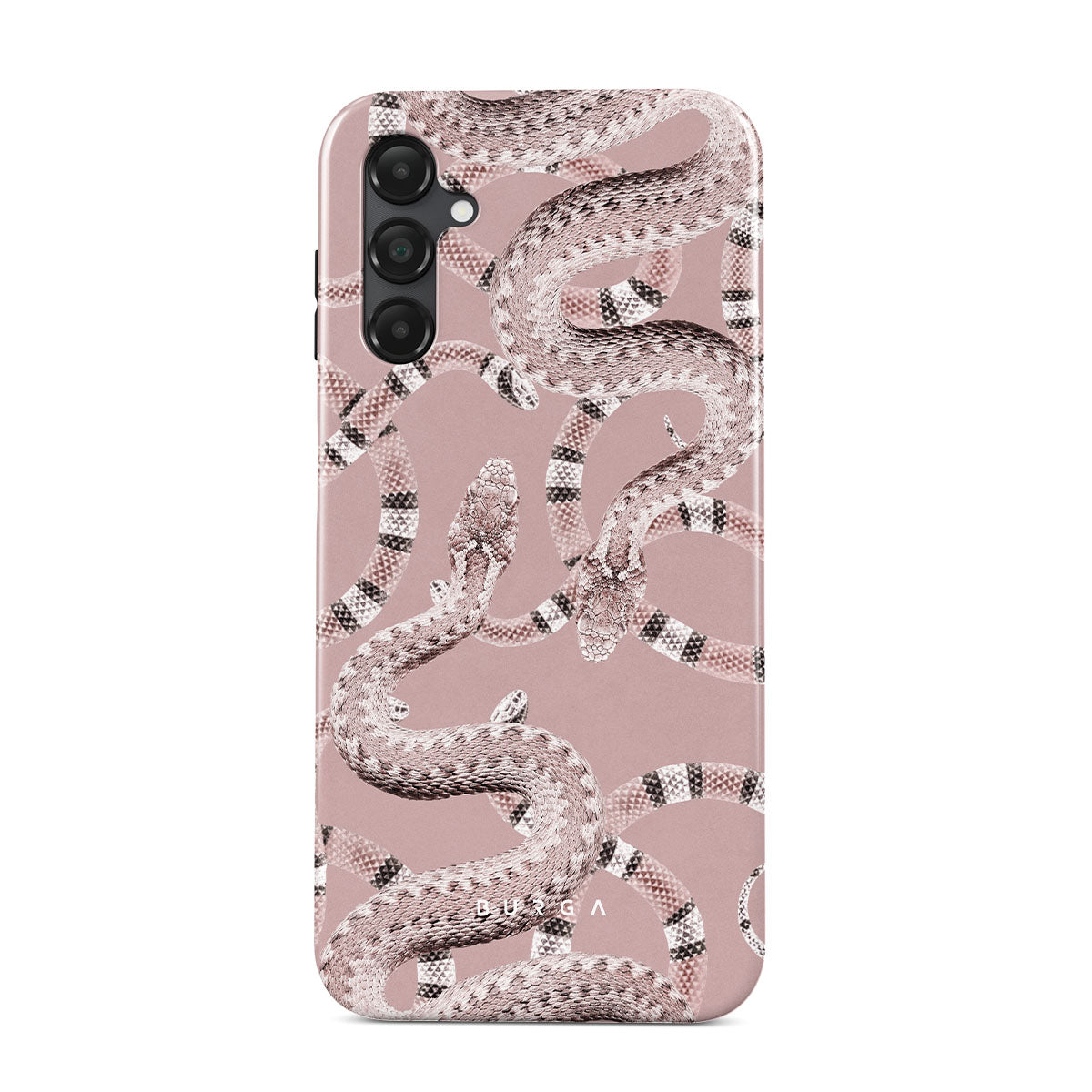 Bring the fierceness with our Poolside Glam Samsung Galaxy A25 phone case. With the pastel pink case featuring snakes, let everyone know that you can always stand for yourself no matter your kind nature. Make a statement and protect your phone at the same time.