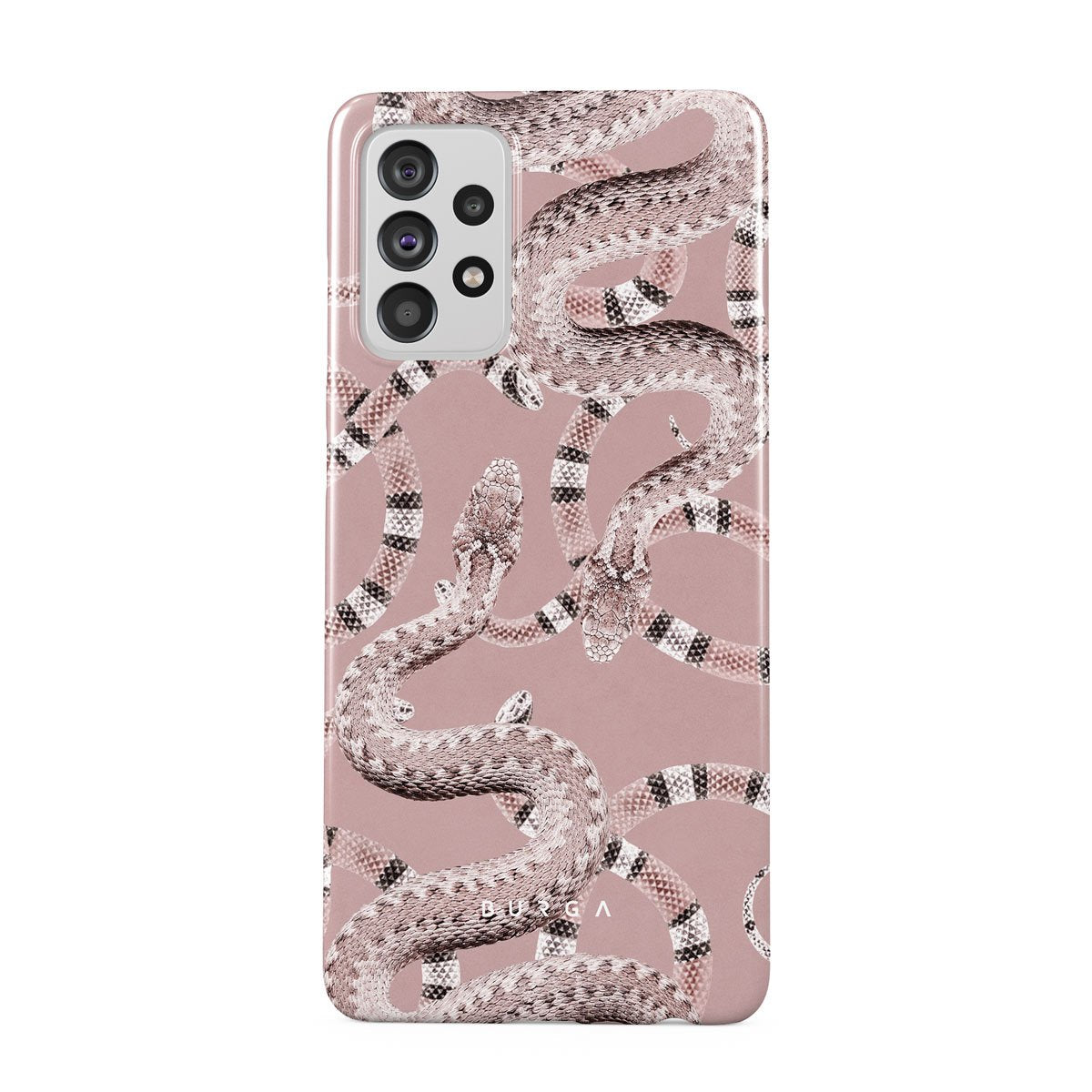 Bring the fierceness with our Poolside Glam Samsung Galaxy A72 phone case. With the pastel pink case featuring snakes, let everyone know that you can always stand for yourself no matter your kind nature. Make a statement and protect your phone at the same time.