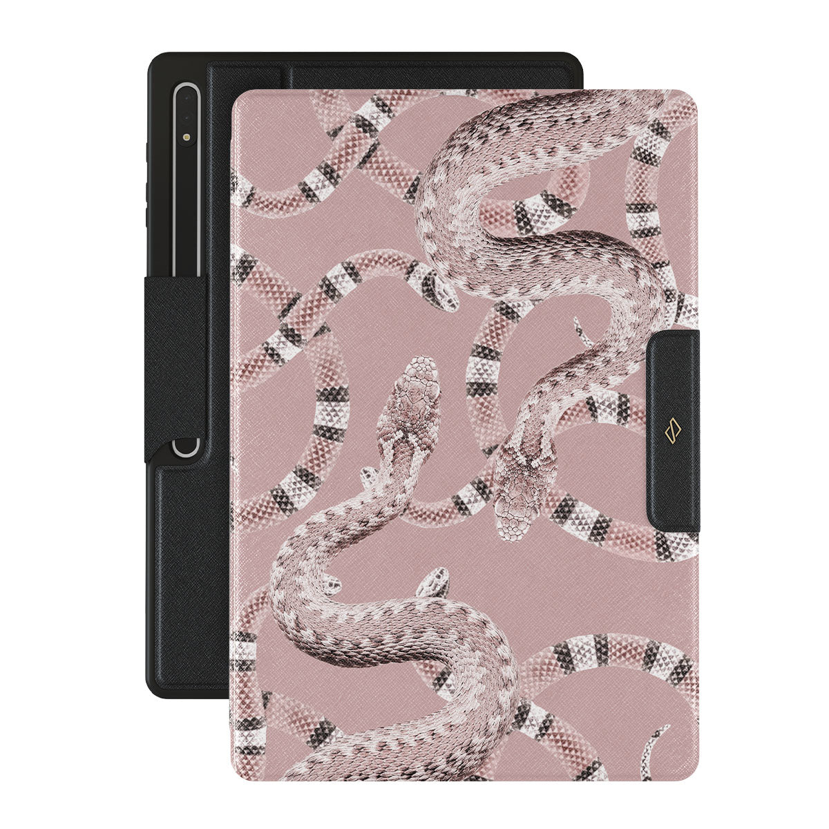 Bring the fierceness with our Poolside Glam Samsung Galaxy Tab S8 Ultra folio case. With the pastel pink case featuring snakes, let everyone know that you can always stand for yourself no matter your kind nature. Make a statement and protect your Galaxy Tab at the same time.