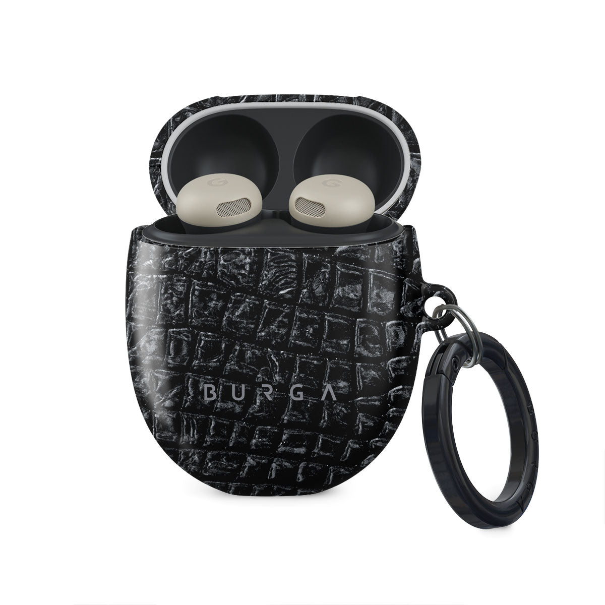 Our Reaper's Touch Google Pixel Buds Pro 2 Case cover features a dangerously beautiful snakeskin design in dark black. Add some confidence to your style, and keep your Google Pixel Buds Pro 2 Case covered and Pro 2tected from the dangers of the world while looking stunning. Our case fits perfectly snug around Google Pixel Buds Pro 2 2 . “Like a glove!” one might say. And it won’t disrupt the wireless charging capabilities of the newer model. There’s even an LED light indicator to Pro 2ve it (don’t worry, wired charging still works, too). When fitted, the BURGA case will Pro 2tect the delicate Google Pixel Buds Pro 2 Case beneath it from scratches, bumps, and drops while remaining scratch-free itself. Our signature design pattern prints are High Quality, and will never peel or fade away- thanks to our unique printing technology. And finally, a handy carabiner is there to make your life easier and more convenient: just snap it around your keys or belt loop and tackle the day head-on. Your music is right there by your side when you need it.