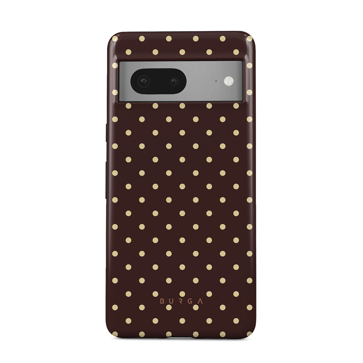 Playful yet polished, our Sorry Busy Google Pixel 7a phone case design features a warm brown background sprinkled with delicate beige polka dots, blending charm with a professional edge. It's for those who keep it stylish, even when fully booked and thriving.