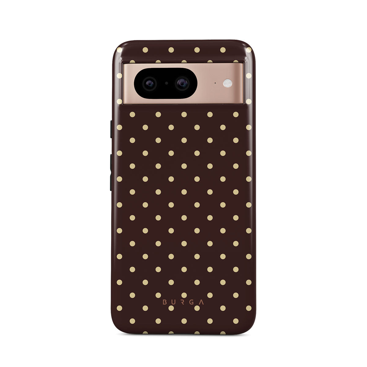 Playful yet polished, our Sorry Busy Google Pixel 8 phone case design features a warm brown background sprinkled with delicate beige polka dots, blending charm with a professional edge. It's for those who keep it stylish, even when fully booked and thriving.