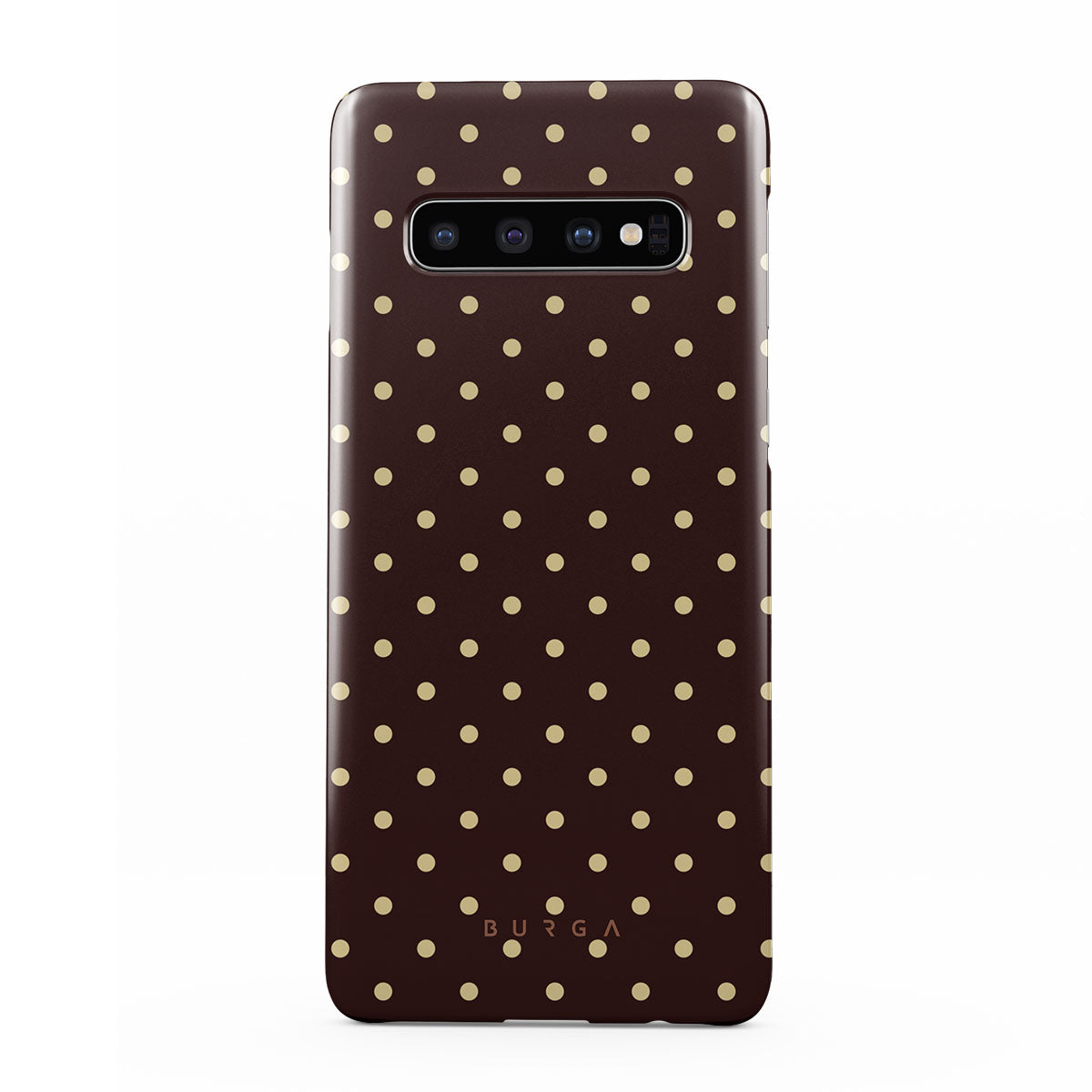 Playful yet polished, our Sorry Busy Samsung Galaxy S10 Plus phone case design features a warm brown background sprinkled with delicate beige polka dots, blending charm with a professional edge. It's for those who keep it stylish, even when fully booked and thriving.