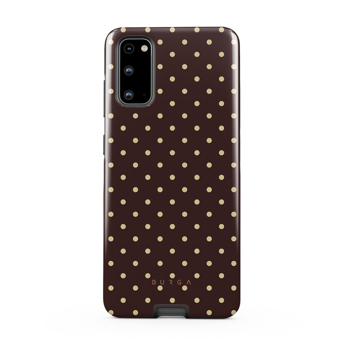 Playful yet polished, our Sorry Busy Samsung Galaxy S20 FE 4G / 5G phone case design features a warm brown background sprinkled with delicate beige polka dots, blending charm with a professional edge. It's for those who keep it stylish, even when fully booked and thriving.