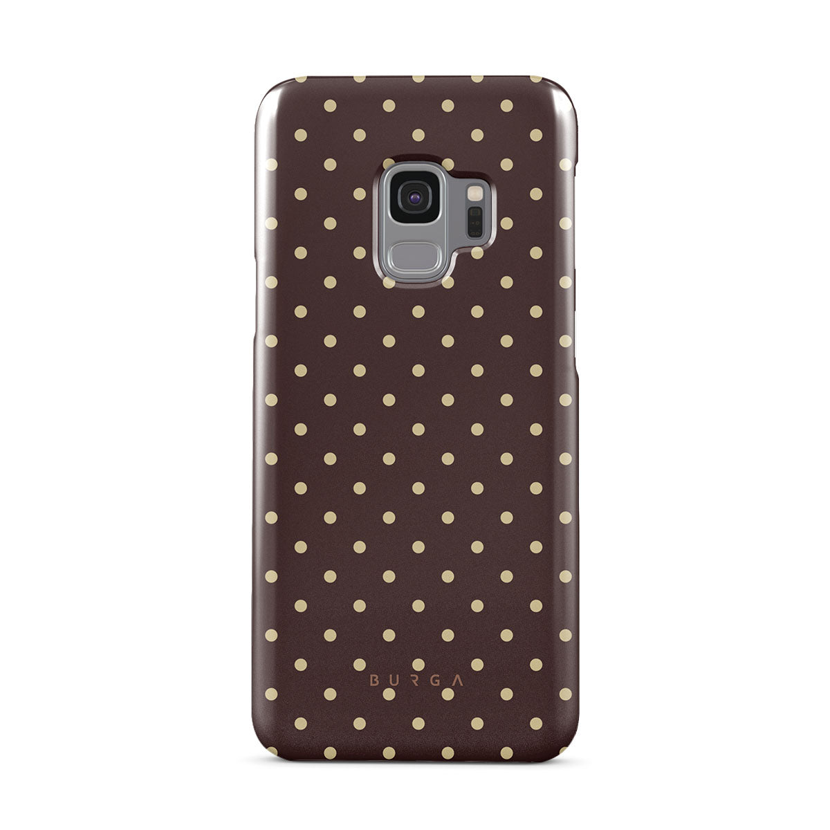 Playful yet polished, our Sorry Busy Samsung Galaxy S9 phone case design features a warm brown background sprinkled with delicate beige polka dots, blending charm with a professional edge. It's for those who keep it stylish, even when fully booked and thriving.