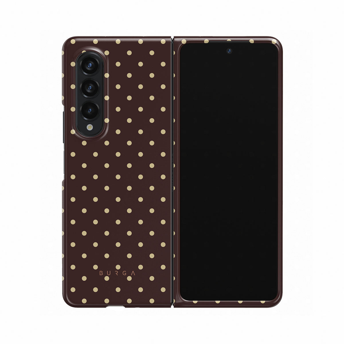 Playful yet polished, our Sorry Busy Samsung Galaxy Z Fold 3 phone case design features a warm brown background sprinkled with delicate beige polka dots, blending charm with a professional edge. It's for those who keep it stylish, even when fully booked and thriving.